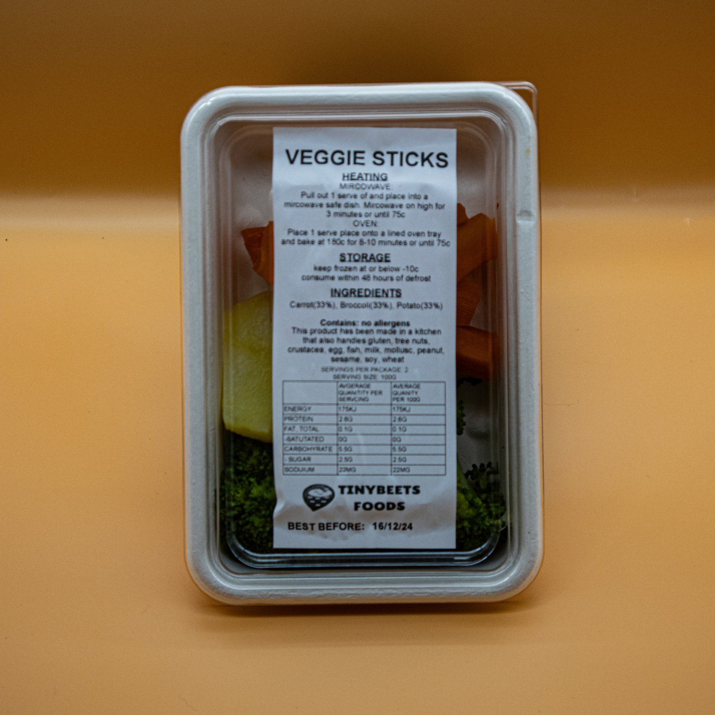 Description: Our Veggie Sticks are not just tasty snacks; they're a gateway to a world of culinary exploration for your little one. Crafted with care using fresh Australian carrots, wholesome potatoes, and nutrient-rich broccoli, each bite-sized stick supports the principles of BLW, promoting self-feeding skills and a love for nutritious foods from the start.